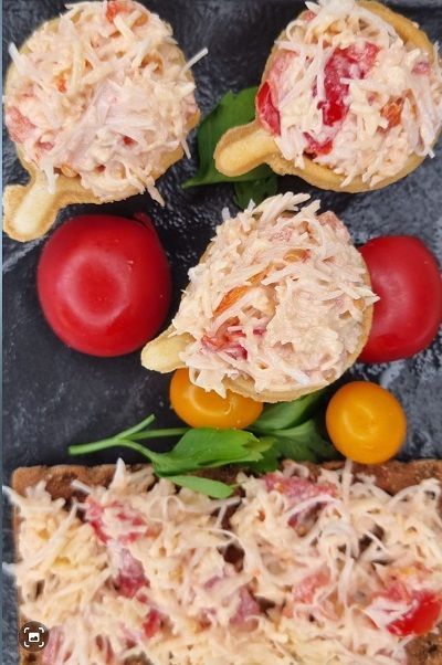 Закуска с крабовым мясом в тарталетках.