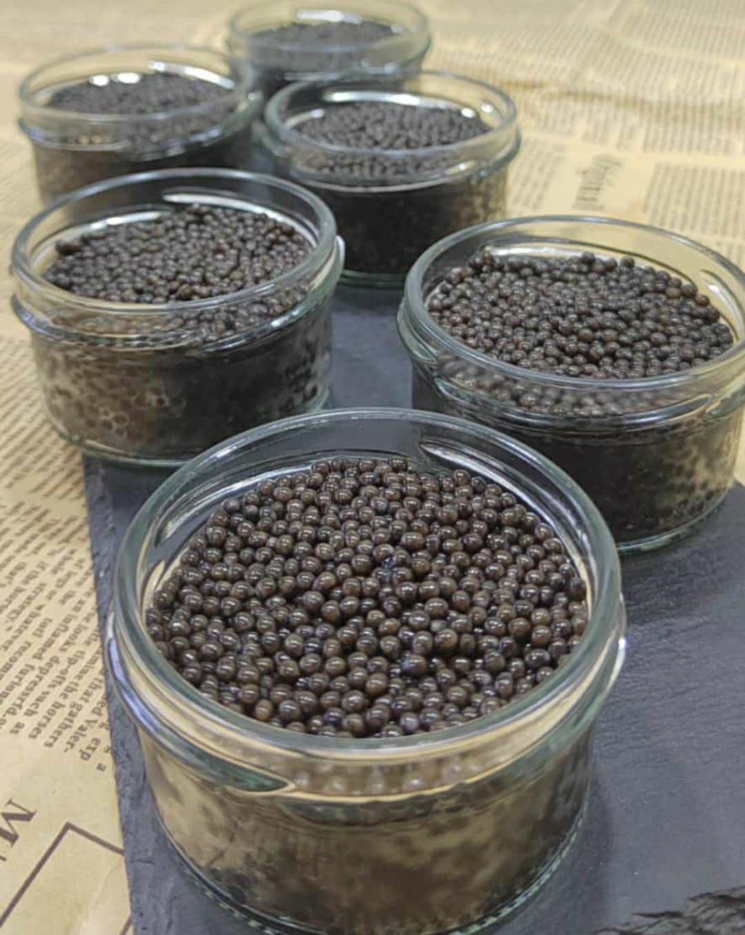 Икра “Классическая” получена из особи Сибирского осетра 5-7 лет. Это довольно взрослая и крупная рыба и икра от нее получается с насыщенным и ярким вкусом. Икра крупные - около 3,5 мм, посол 3,5 грамм соли на кг - это стандартный, классический посол. Икра не расползается на бутерброде, а выглядит единой консистенцией, икринка к икринке. Посол близок к тому, который использовался во времена наших дедушек и бабушек. Продукт для тех, кто любит икру посолонее.
