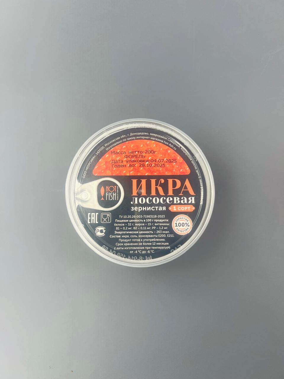 Икра зернистая форели радужной,соль поваренная пищевая,консервант:бензоат натрия (Е211), сорбат калия (Е202).