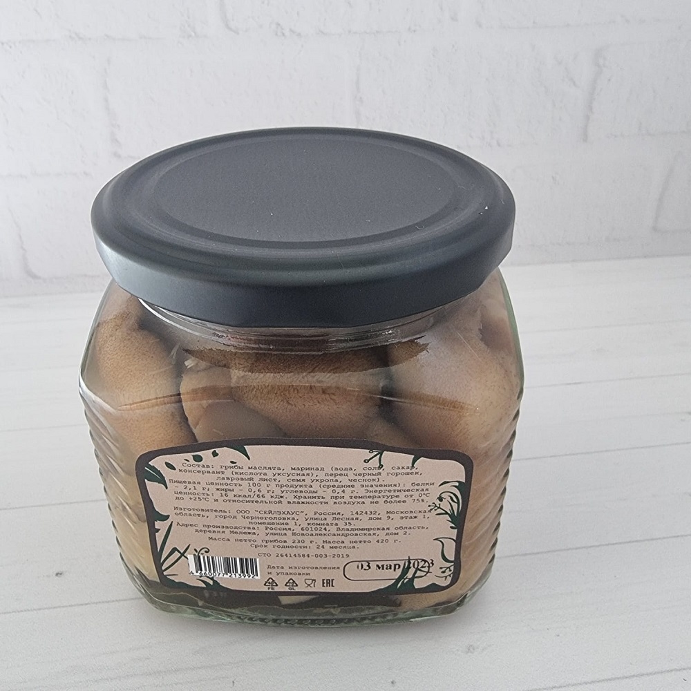 Грибы маслята,маринад (вода, соль, кислота уксусная), перец черный горошек, лавровый лист, семя укропа, чеснок