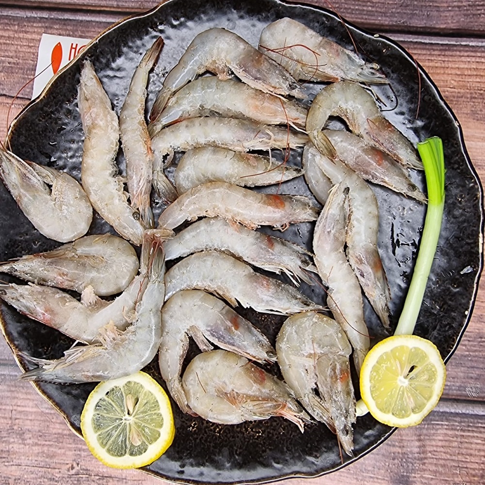 Свежезамороженые королевские креветки ваннамей с головой в панцире 50/60. Цифры означают количество креветок в килограмме (50-60 штук в килограмме). Креветки можно использовать как самостоятельное блюдо или как закуску, добавлять в теплые салаты, пасты, супы. Идеальным вариантом приготовления будет такой вариант: обжарить креветки с чесноком и соевым соусом, креветки станут аппетитного красноватого цвета с нежным вкусом .