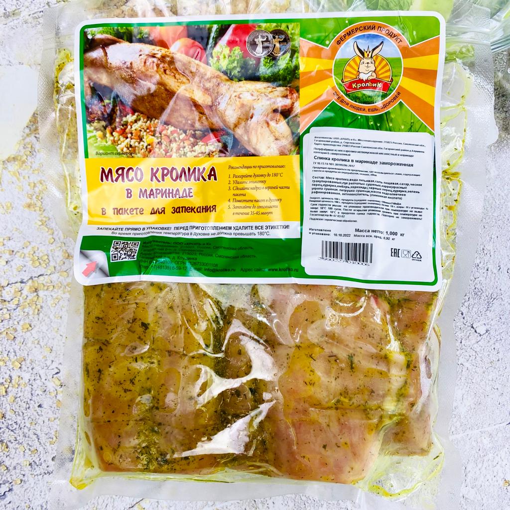 Спинки кролика в маринаде-удачное решение для быстрого обеда или ужина. Легко готовить, даже руки не замараются. Нужно только удалить этикетку и сделать вверху надрез или проколы на упаковке и в разогретую до 180*С духовку на 35-45 минут.
