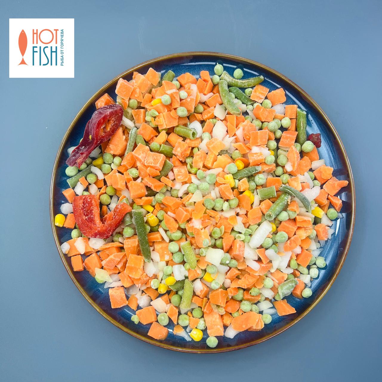 Морковь, перец сладкий, лук репчатый, фасоль стручковая, горошек зеленый, кукуруза зерно