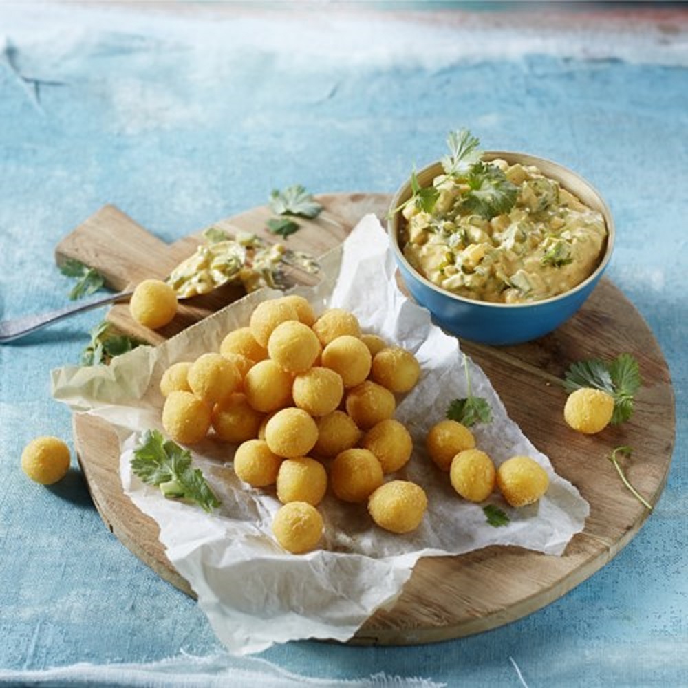 Не размораживая, обжарить во фритюре или запечь в духовке с грилем
