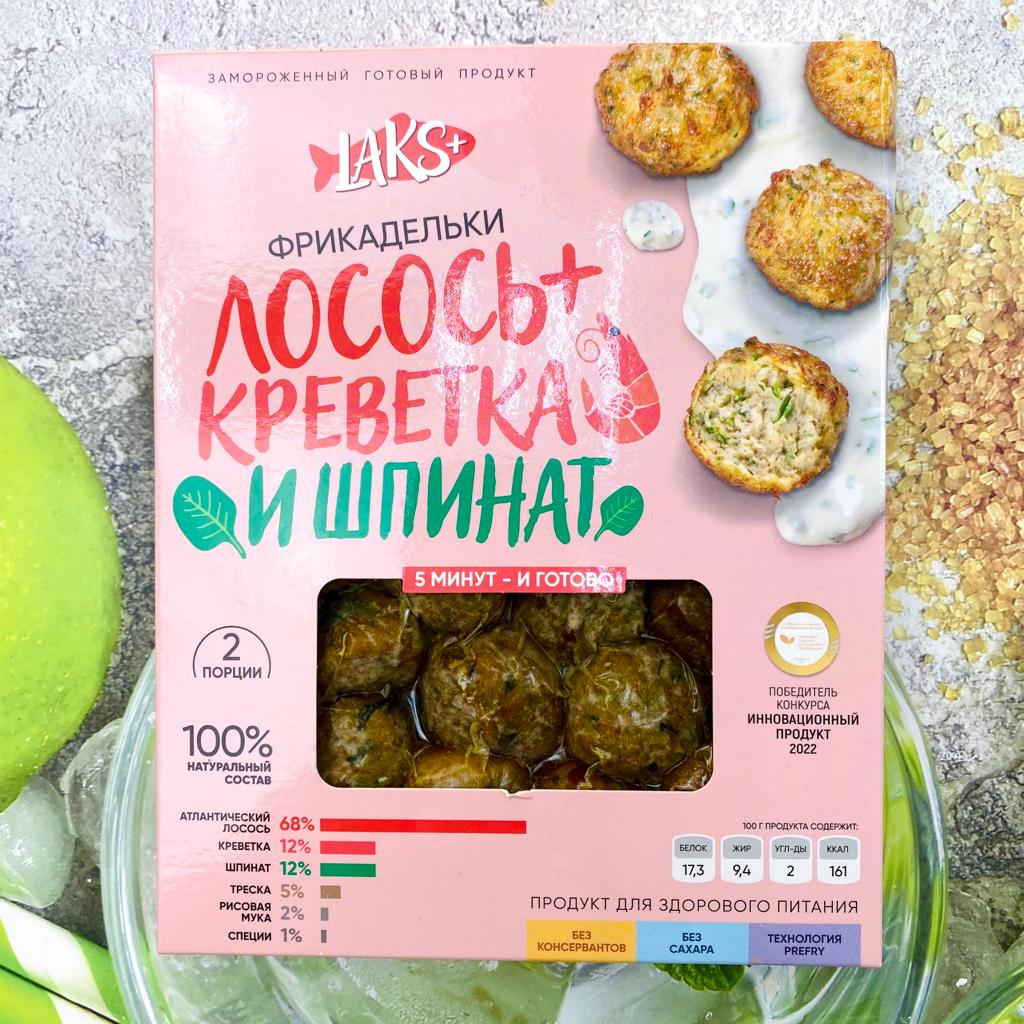 Продукт для здорового питания! Атлантический лосось + мясо креветки + шпинат = максимальная польза для Вашего организма. Без сахара, без консервантов, улучшителей вкуса и только 2% рисовой муки. Благодаря такому составу продукт подходит под многие виды диет. Шоковая заморозка надежно сохраняет полезные свойства и свежесть вкуса.