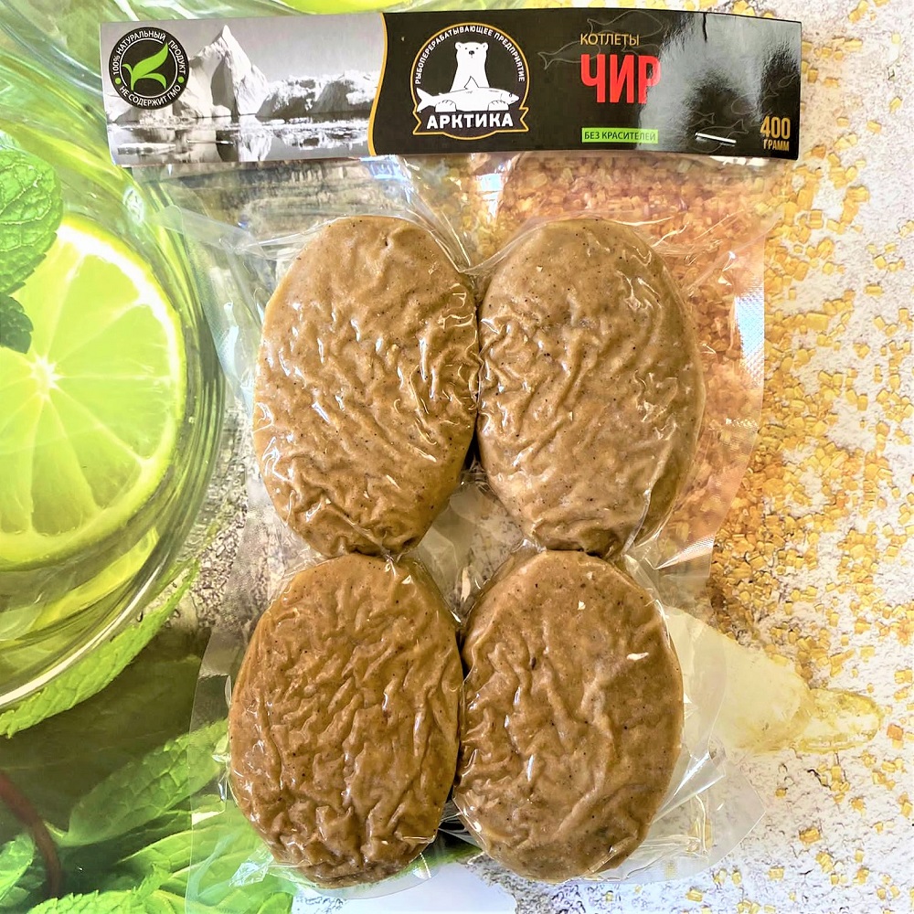 фарш рыбный из чира, лук репчатый,патока крахмальная,клетчатка пшеничная, яичный порошок, соль поваренная пищевая.