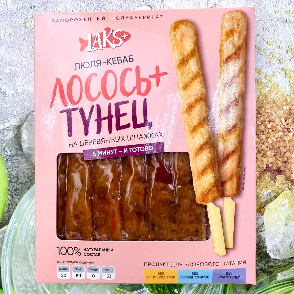 Люля-кебаб из лосося и тунца на деревянных шпажках