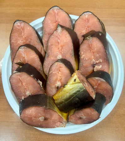 Горбуша холодного копчения "Балык" — это изысканный деликатес, который сочетает в себе нежный вкус рыбы и тонкий аромат дыма. Этот продукт идеально подходит для ценителей качественной и натуральной пищи.
