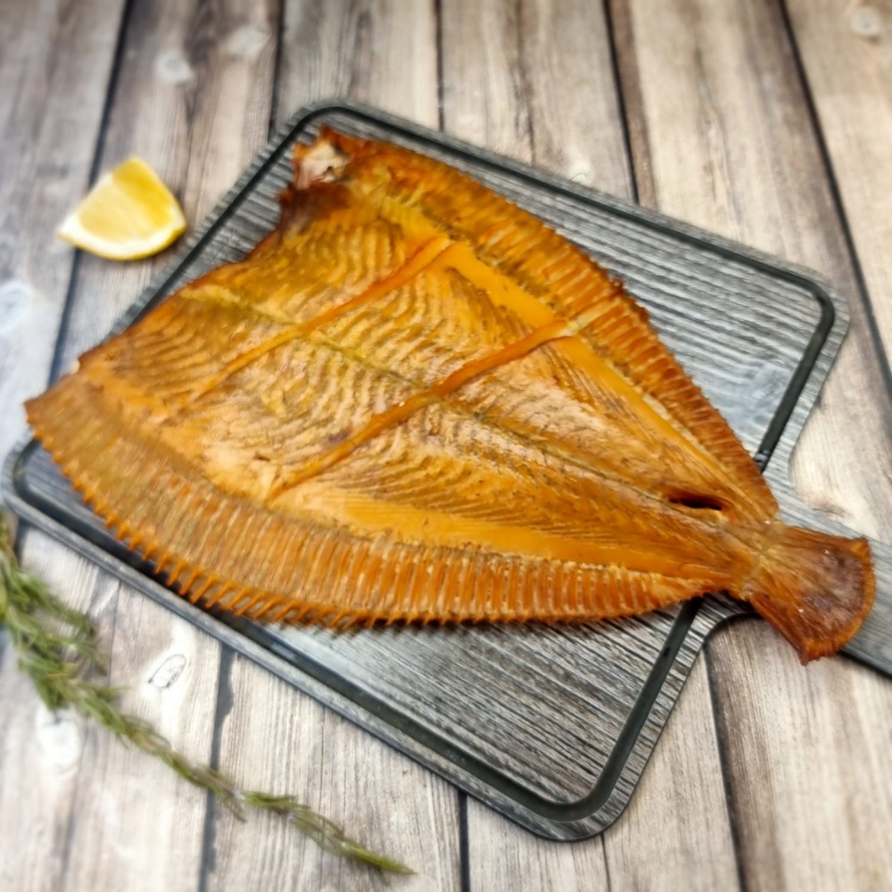 Приготовлено без использования консервантов и вредных пищевых добавок. Камбала обладает нежным сочным мясом с достаточным количеством подкожного жира. В процессе холодного копчения рыбка приобретает золотистый оттенок и аппетитный аромат дымка. Слабо соленая и вкусная рыбка станет замечательным дополнением к гарниру из картофеля и прекрасной закуской к пиву.