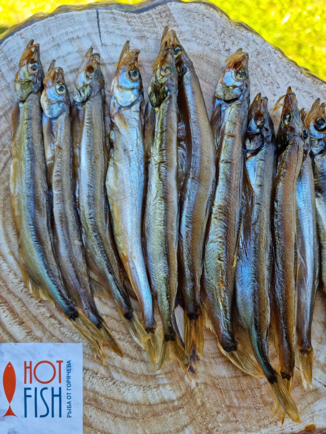 Мойва холодного копчения-вкусные, слабой соли, жирненькие крупные рыбинки. Порадуйте себя свежезакопченой мойвой! В упаковке примерно 500г