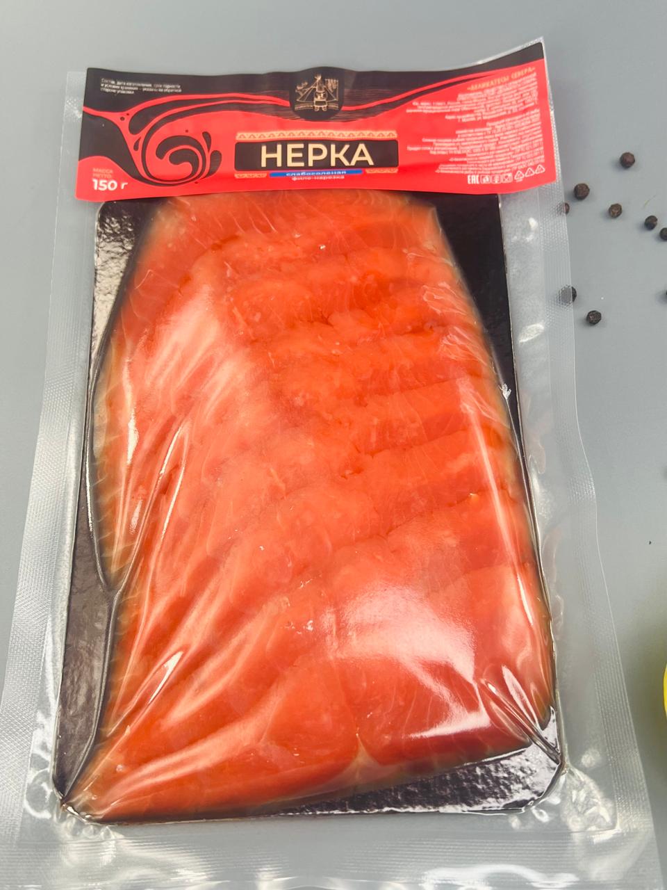 Процесс слабосоления позволяет сохранить естественный вкус нерки, придавая ей легкую солоноватость, которая подчеркивает свежесть и натуральность продукта. Ломтики имеют аппетитный яркий цвет, а текстура мяса — плотная и сочная, что делает их идеальными для закусок и праздничных блюд.