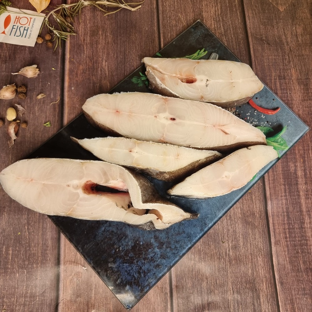 Стейки палтуса упакованы в вакуумную упаковку по 500г, нарезаны из 1,5-2 килограммовой тушки. Палтус удивительно вкусная морская рыба, мясо очень нежное, практически не содержит костей, с большим содержанием белка, полезного для мышечной системы, омега-3 жирных кислот, необходимых для нормальной работы нервной системы, и селена, который помогает работе щитовидной железы.