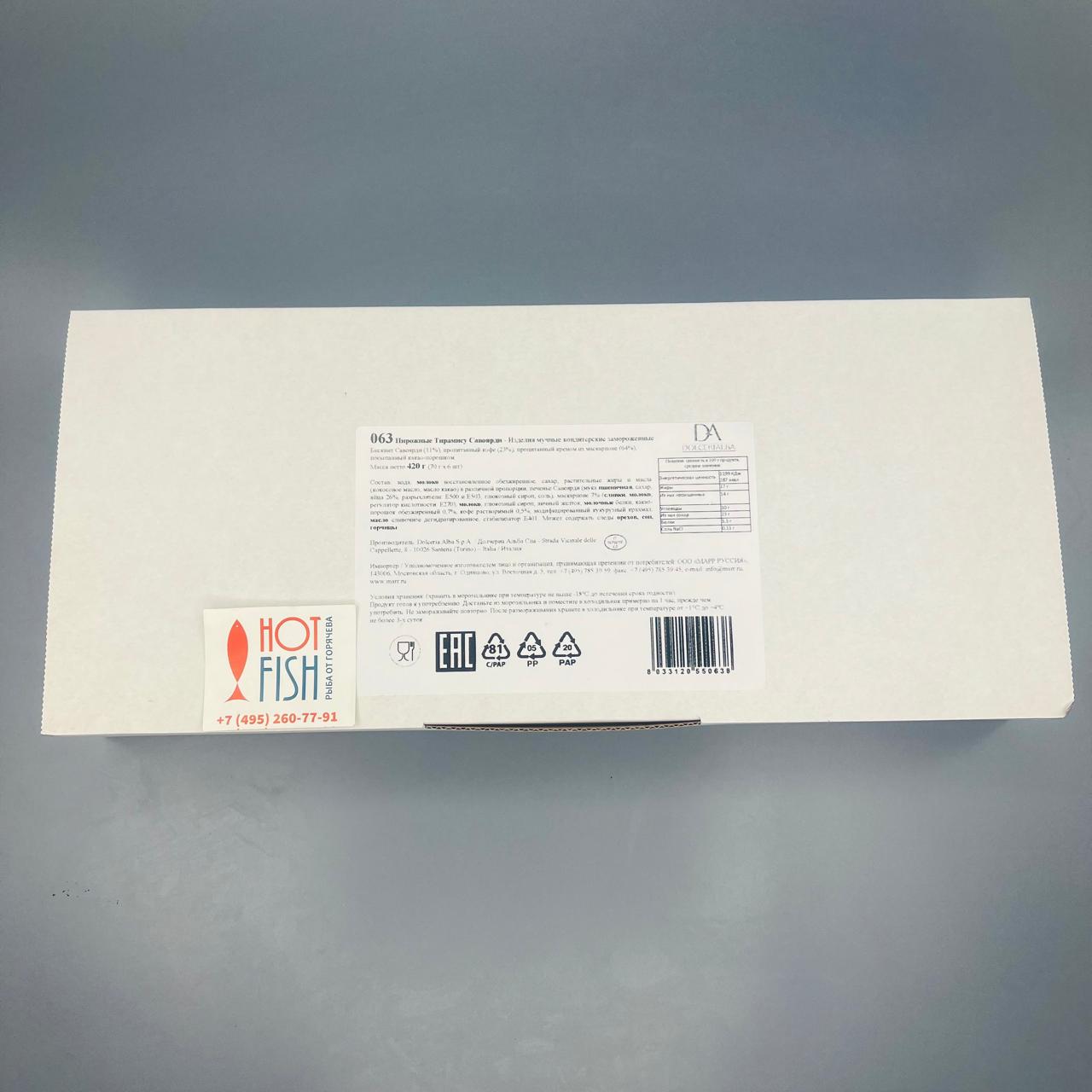 Бисквит Савоярди (11%),пропитанный кофе (23%),пропитанный кремом из маскарпоне (64%). Посыпанный какао-порошком.