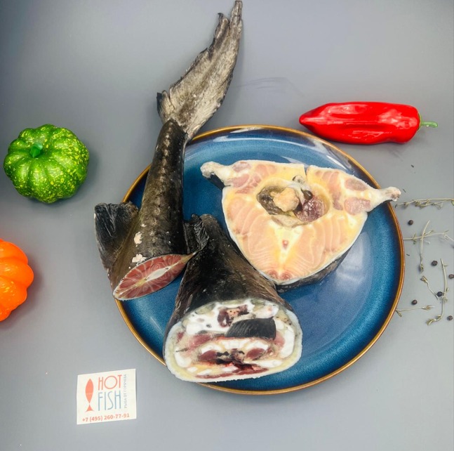 Хвост осетра: Мясо хвоста нежное и сочное, с легким сладковатым вкусом. Оно идеально подходит для приготовления супов, добавляя в них уникальный морской аромат и богатство вкуса.
